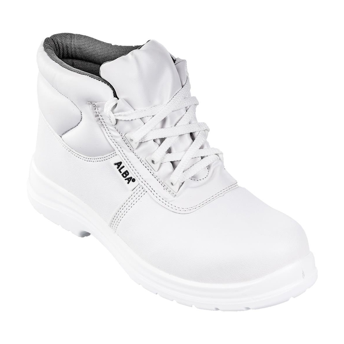 ALBA (S2 SRC) BAKANCS: • folyadékoknak jobban ellenálló, fehér mikroszálas felsőrész • kiváló szellőző, vízgőzáteresztő tulajdonságok • antisztatikus, olajálló, hajlékony, kétrétegű, fehér PU talp, ütődéselnyelő sarokkal • nedves acél és kerámia felületekre bevizsgált, SRC fokú csúszás elleni védelem, kényelmes talpbélés • erős műanyag fűzővezetők, teljesen fémmentes, könnyű súlyú, egészségügyi, élelmiszeripari munkákhoz, egész napos viseletre ajánlott védőlábbeli • szivaccsal párnázott bokarész és békanyelv • kompozit lábujjvédős bakancs • méret: 35 • EU szabvány: EN ISO 20344, EN ISO 20345
