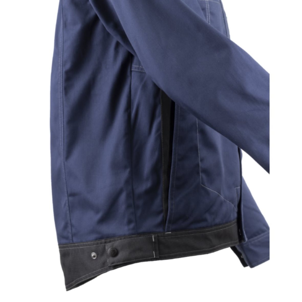 270 g/m2 vastag, 60% pamut + 40% poliészter kevertszálas alapanyag, sötétkék színben,kopásálló Oxford PES betétekkel,