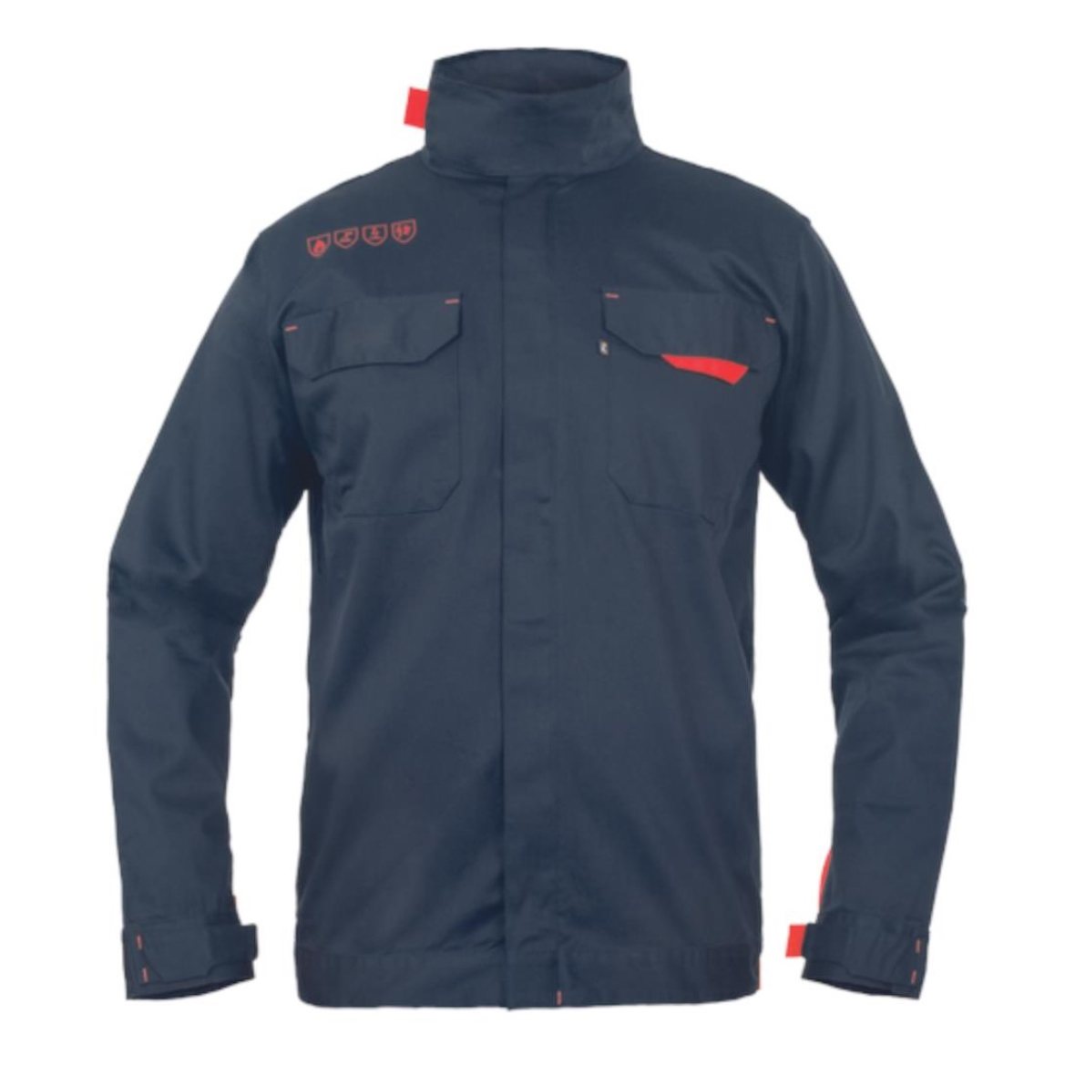 Multinorm munkakabát cipzárral záródó kialakításban tépőzáras hajtókával. Állógalléros kivitel, 2 hajtókás mellzsebbel, szűkíthető mandzsettával.