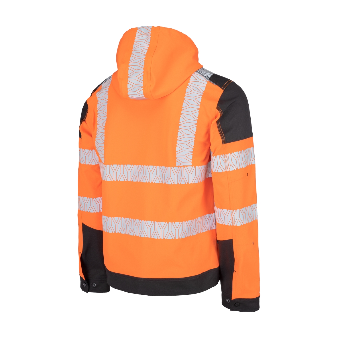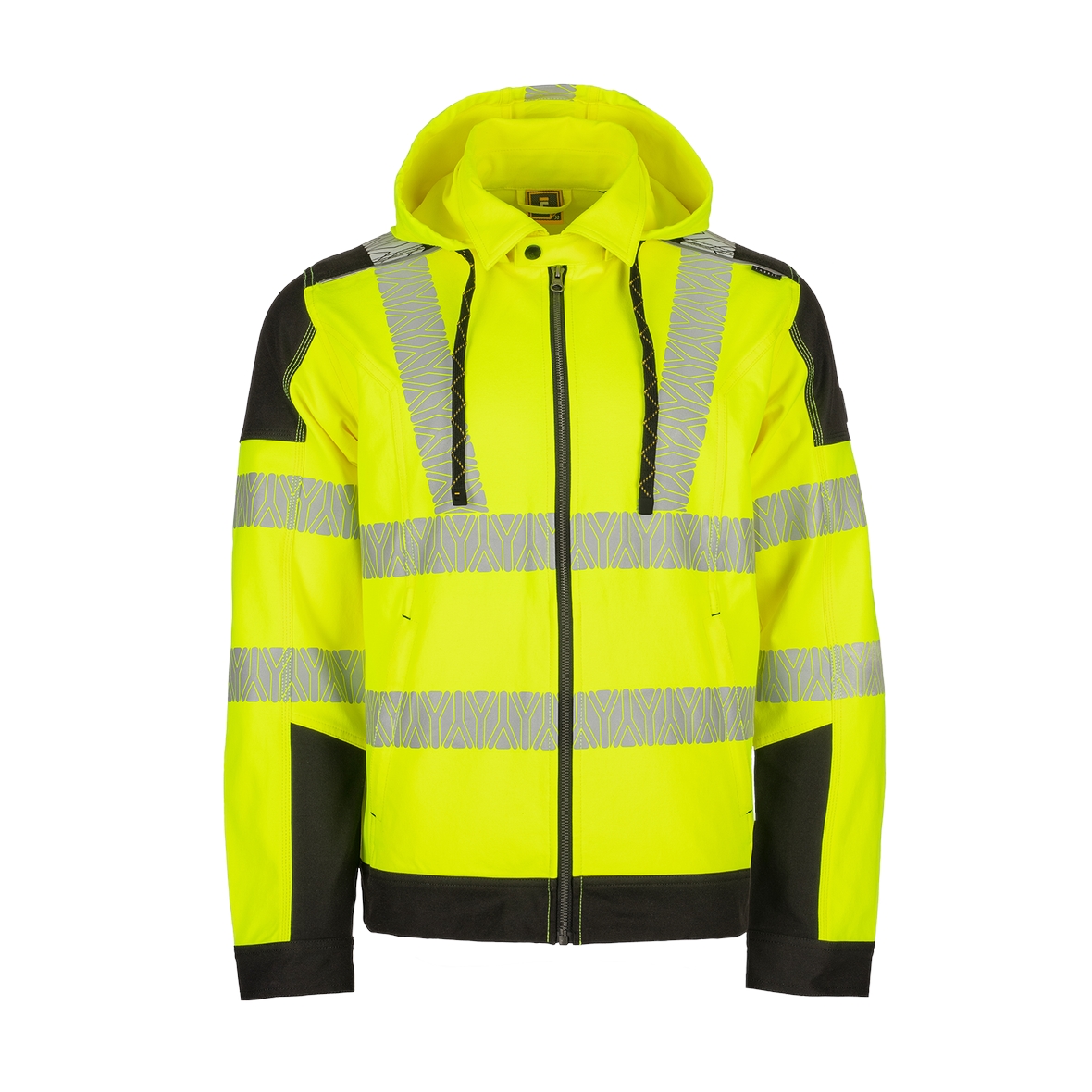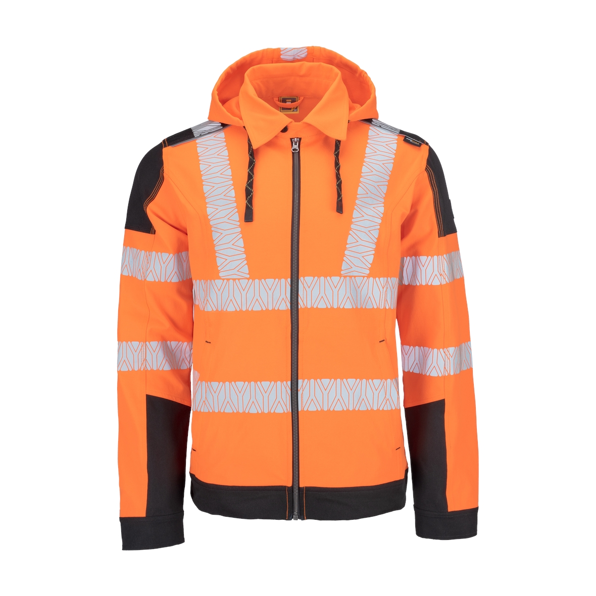 • jólláthatósági (HV) 4 irányban rugalmas poliészter szövet • szegmentált fényvisszaverő csíkok • számos praktikus zseb oldalt és elöl • levehető kapucni • textilerősítés vállrészen