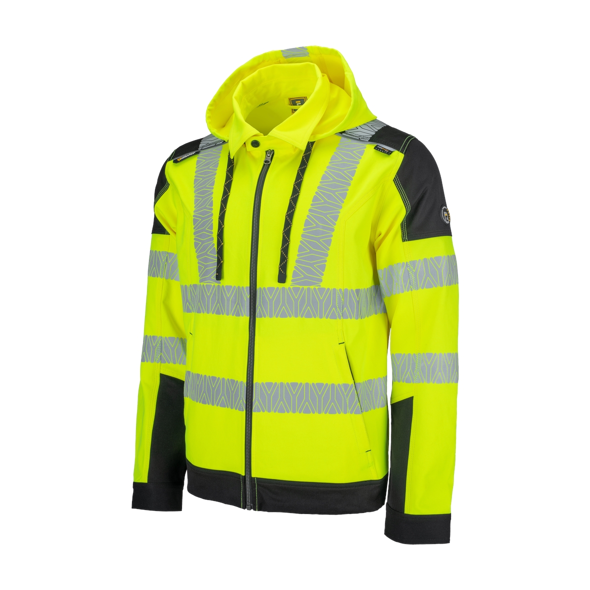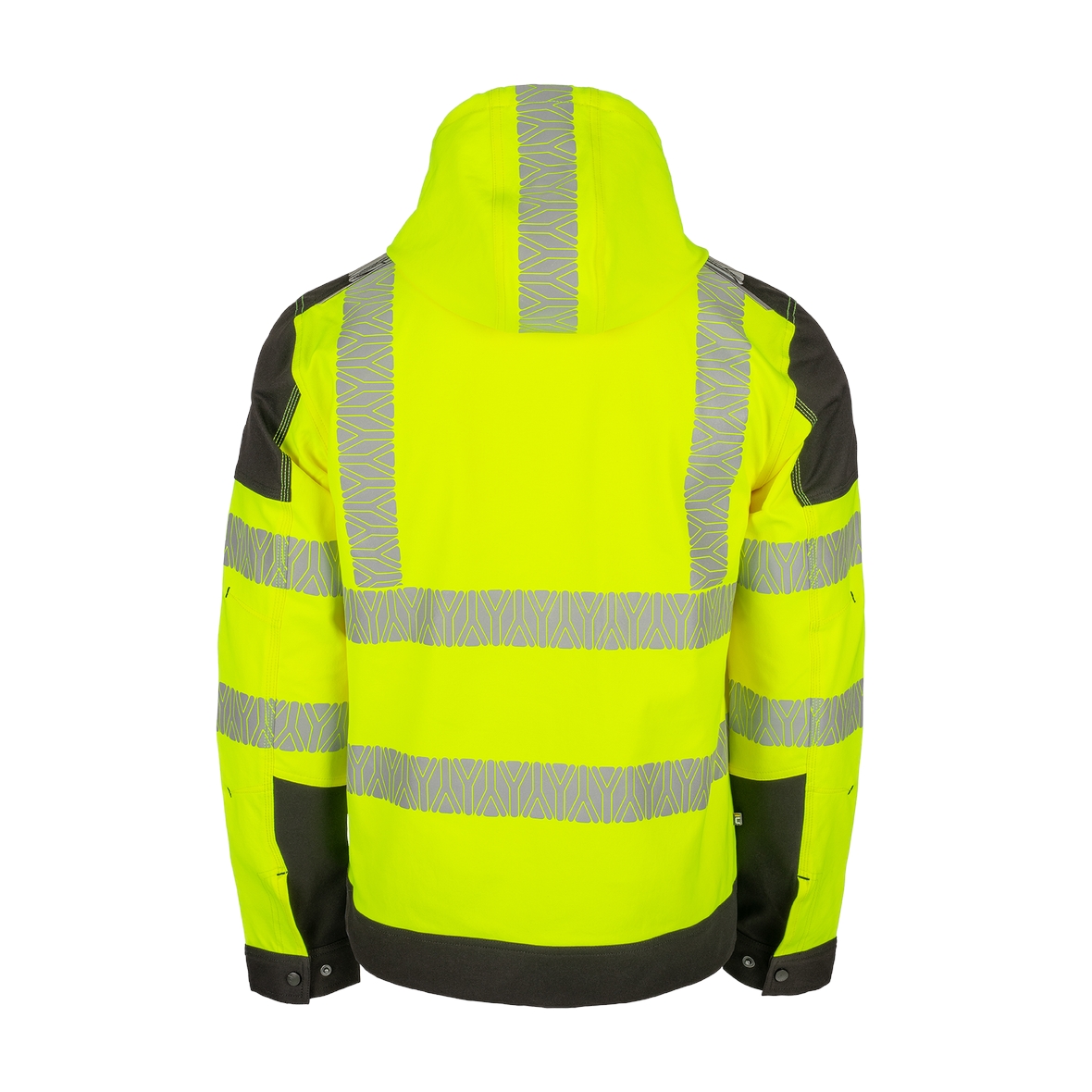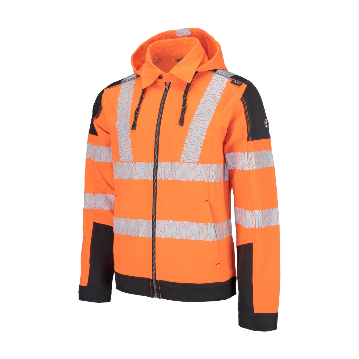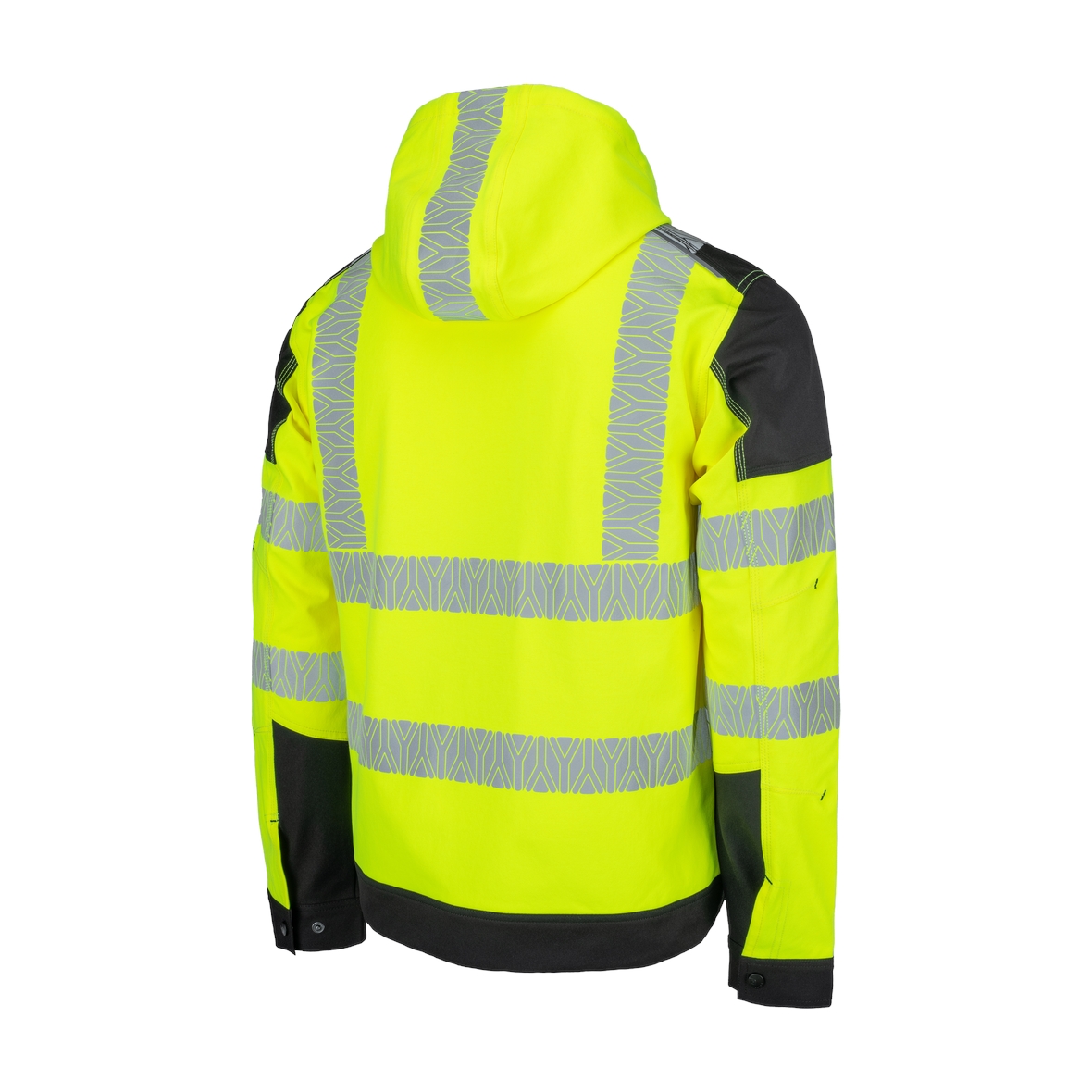 • jólláthatósági (HV) 4 irányban rugalmas poliészter szövet • szegmentált fényvisszaverő csíkok • számos praktikus zseb oldalt és elöl • levehető kapucni • textilerősítés vállrészen