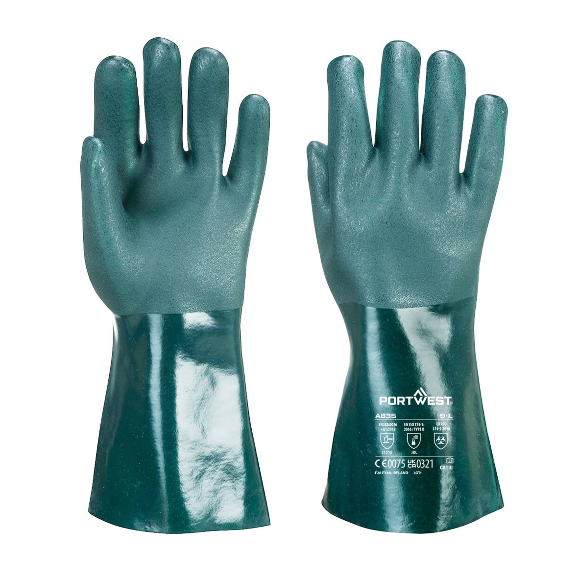 Duplán mártott PVC kesztyű, homokos bevonattal a jobb tapadás érdekében Extra komfortot nyújtó Jersey bélés Elérhető 3 különböző hosszúságban, 27cm, 35cm és 45cm Duplán mártott PVC kesztyű, homokos bevonattal a jobb tapadás érdekében Extra komfortot nyújtó Jersey bélés Ftalát mentes Vegyszerálló hosszúszárú kesztyű 1.6mm vastag Elérhető 3 különböző hosszúságban, 27cm, 35cm és 45cm 350 mm hossz CE minősítés
