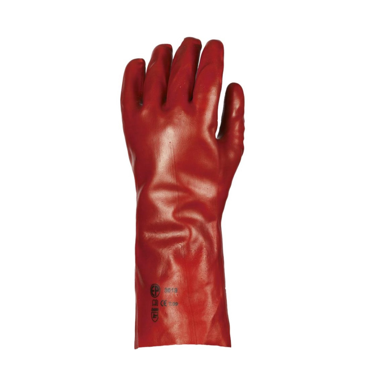 36 CM MÁRTOTT PIROS PVC ECOLINE KESZTYŰ: • pamutra mártott, nedvességálló piros PVC • 0,8 mm vastag, 36 cm hosszú védőkesztyű • Ecoline® változat • MÉRET: 9-es • CSOMAGOLÁS: 100/10 • EU szabvány: EN420, EN388: 4121