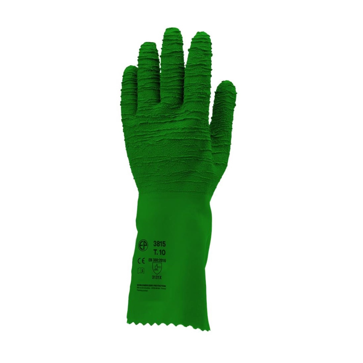 32 CM MÁRTOTT, ÉRDESÍTETT ZÖLD, VÁGÁSBIZTOS, CSÚSZÁSGÁTLÓS KESZTYŰ: • pamutra mártott, érdesített zöld latex • 32 cm hosszú, csuklóban szűkített • vágásbiztos és csúszásmentes, nagy szakítószilárdságú védőkesztyű • MÉRET: 10-es • CSOMAGOLÁS: 60/12 • EU szabvány: EN420, EN388: 3131