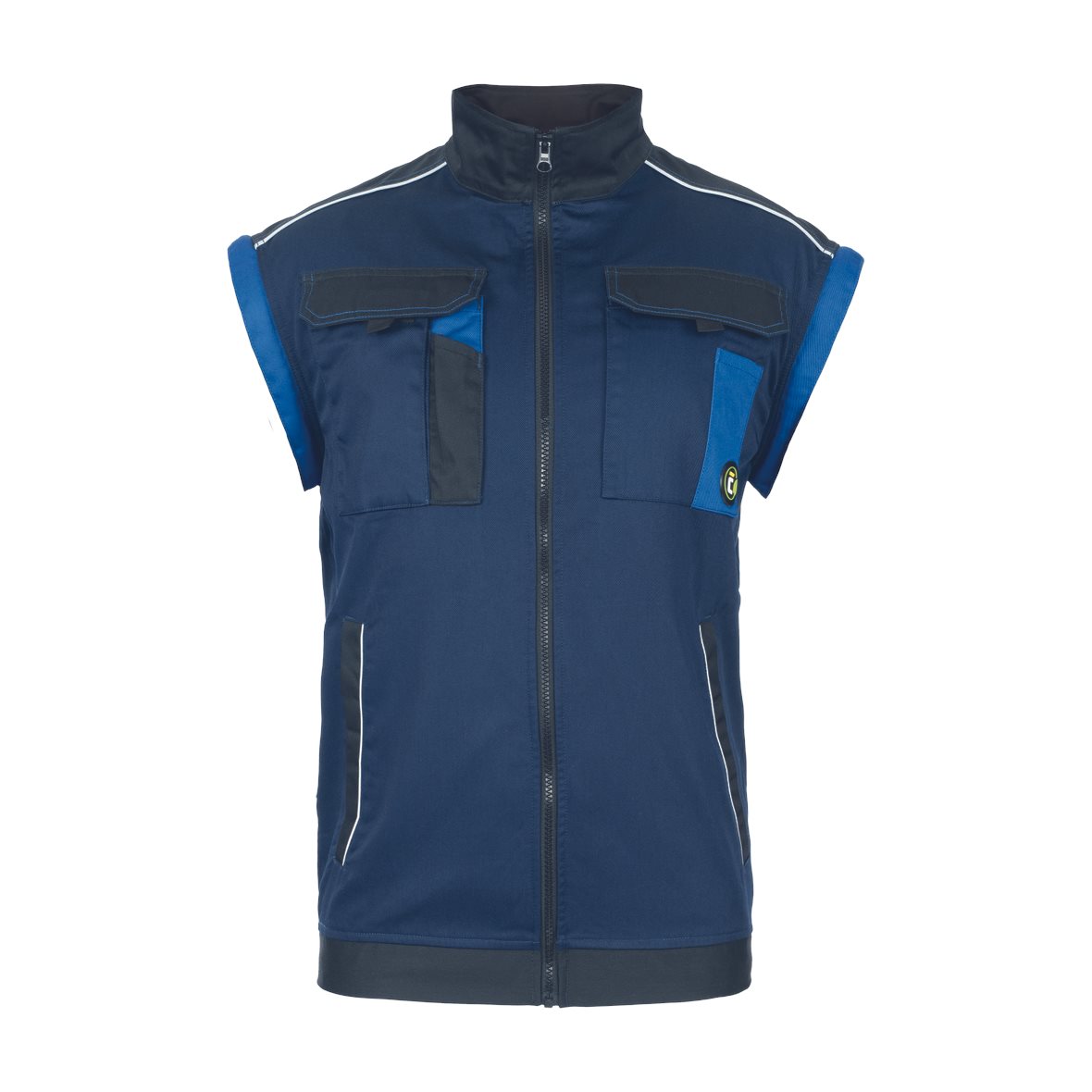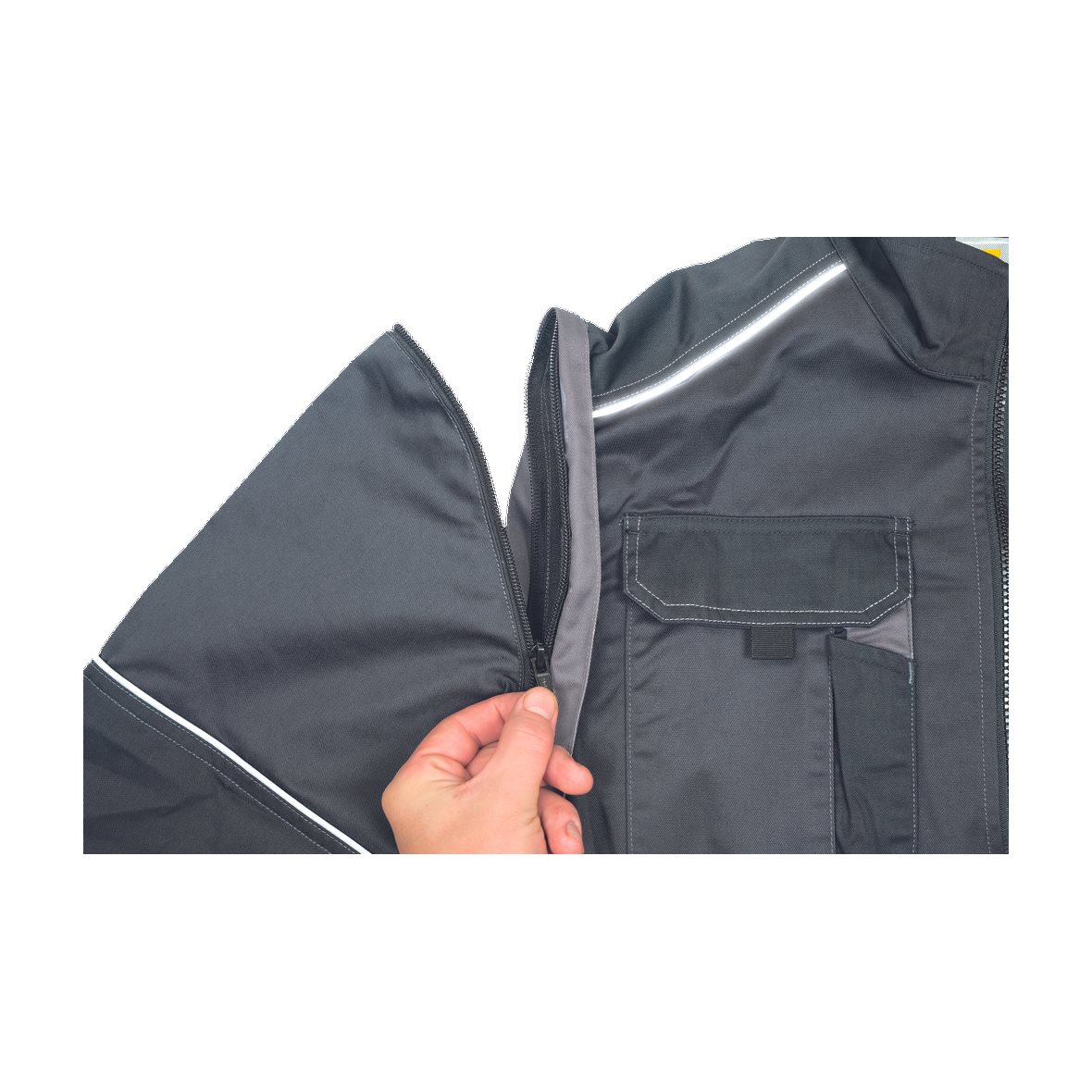 • férfi munkakabát cipzárral, takart patentes borítással • 2 oldalzseb • 2 tépőzáras mellzseb • megerősített vállrészek • levehető ujjak rugalmas mandzsettákkal • rugalmas derékpánt • fényvisszavető részletek