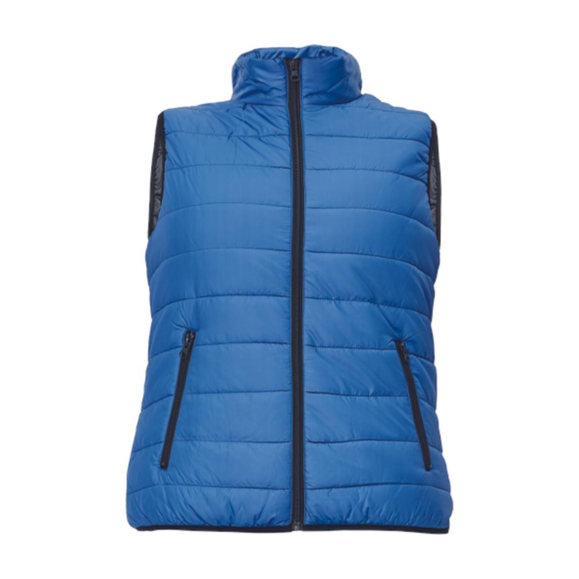 női, könnyű, cipzáras mellény; rugalmas derék; 2 oldalsó zseb, 2 cipzáras mellzseb