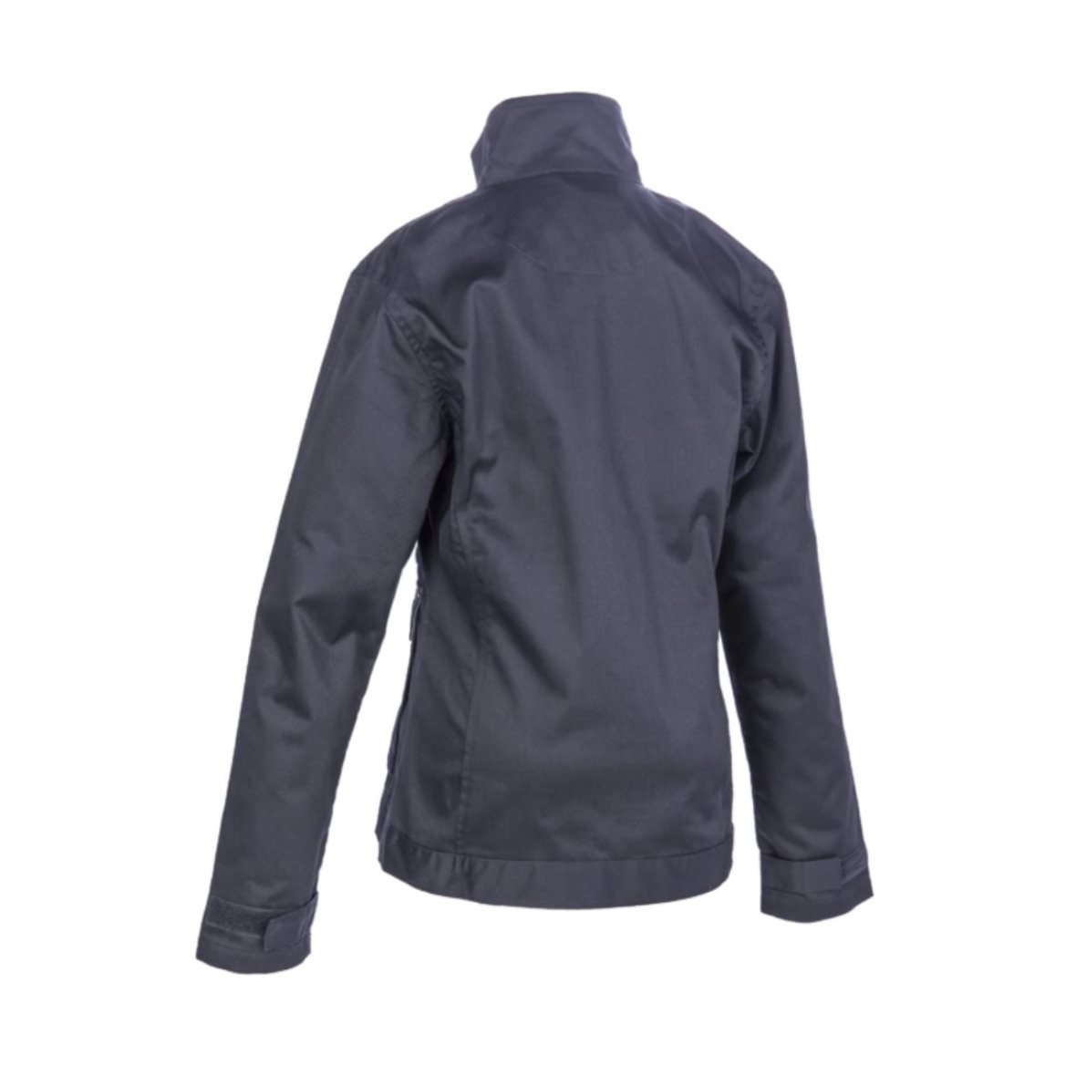 245 g/m2 vastag, kopásálló, sávolykötésű anyag, 60% pamut, 40% poliészter, női fazonú munkakabát,