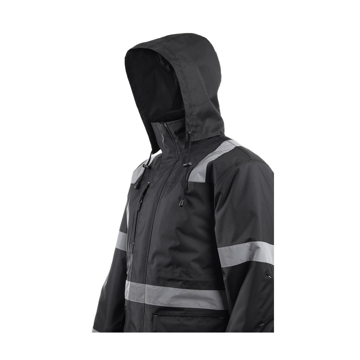 SECURITE FEKETE TÉLIKABÁT FÉNYVISSZAVERŐ CSÍKOKKAL