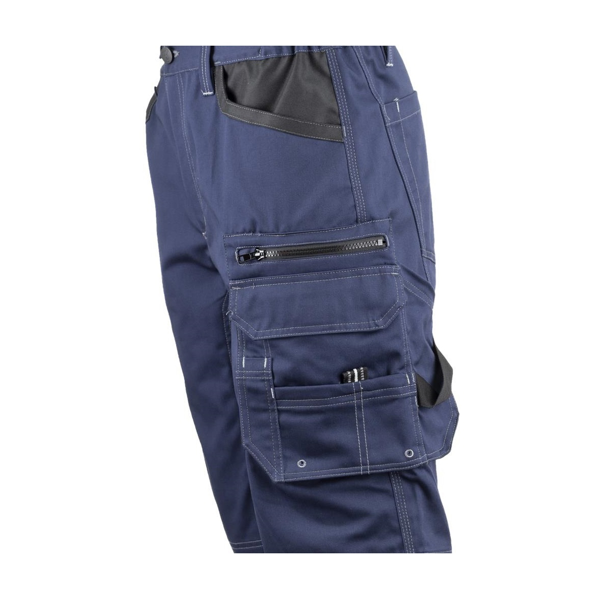 • 270 g/m2 vastag, 60% pamut + 40% poliészter kevertszálas alapanyag • kopásálló Oxford 100% PES fekete betétekkel megerősített részek: zsebeknél stb. • regular szabású, divatos formai kialakítás, megemelt hátrész • övbújtatók, biztonsági tripla varrás és betét a láb között • elrejtett fém alkatrészek, díszvarrás • gombbal és cipzárral záródó, gumírozott derék • egy szerszám- és egy kalapácstartó hurok • két bebújós oldalzseb • két farzseb • egy cipzáras combzseb • egy többrekeszes fedett és megerősített cargo zseb tolltartóval és kalapácstartó hurokkal • egy háromrészes szerszámtartó • megerősített vonalzó zseb • egy hosszú, félig lebegő oldalzseb
