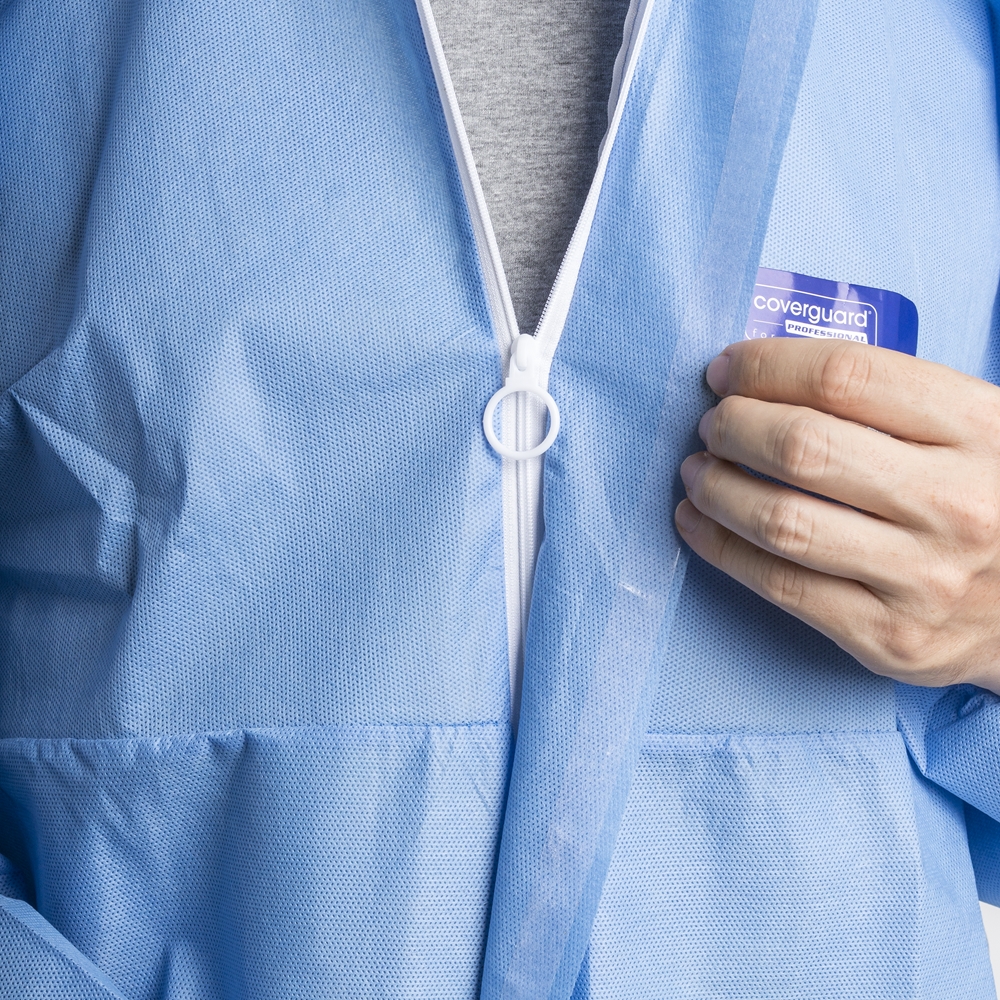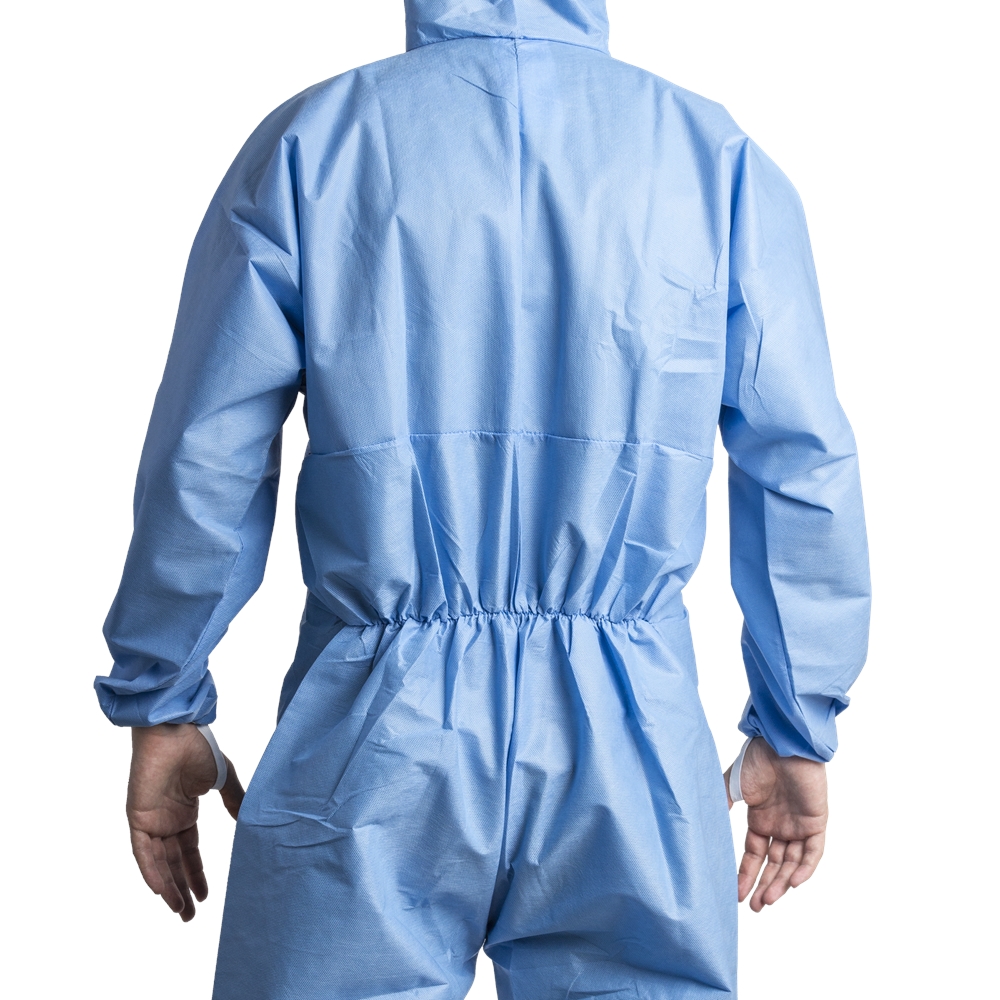 COVERPRO 5S11 KÉK OVERALL: • kék színű, három rétegű, kapucnis könnyű (50 g/m2) SMS polipropilén overall • porok, folyadékpermetek, fröccsenő vegyszerek, továbbá radioaktív szennyeződésű részecskék elleni védelem, antisztatikus tulajdonság • gumizott derék-, arc-, csukló- és bokarész, védőhajtókával ellátott cipzár • III. védelmi kategória, 5. és 6. típus • MÉRET: M • CSOMAGOLÁS: 25 db • EU szabvány: Cat. III., EN13034:2005 +A1:2009 Type 6, EN13982-1:2004 +A1:2010 Type 5, 1073-2:2002 Class 2, EN 1149-5:2008